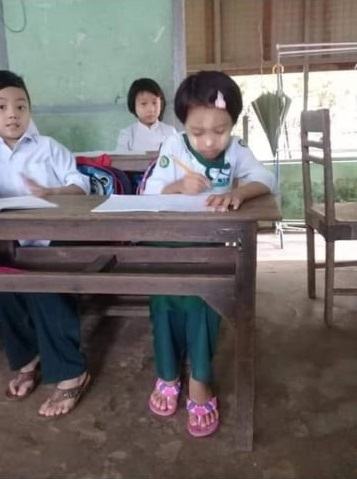 As cognitive improvements, she has known the names of her teacher and friends. She can choose and match the same colors, shapes into materials. Her social awareness is improved a lot, she knows that when she meets her friends and teachers, she must greet them. Her improvement in reading and writing is still limited, she can only read sample basic words in Burmese and English and do basic calculation in Mathematics. She becomes more active in daily living.
