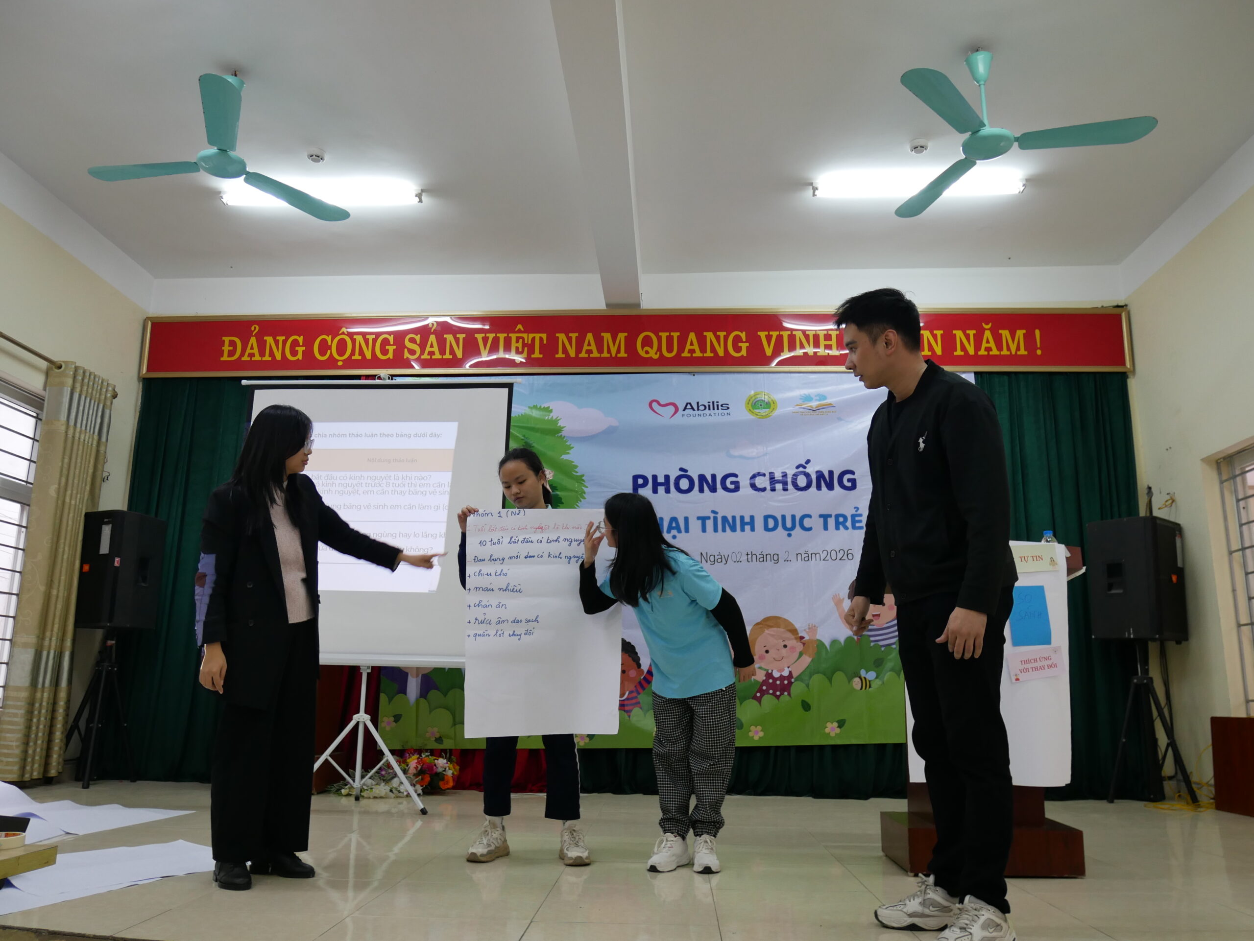 Under the facilitation of RCI trainers Ms. Nguyen Thanh Thuy and Ms. Le Thi Ha, with the support of two sign language interpreters and C5 teachers, the sessions were conducted in an engaging, open, and safe learning environment. Rather than relying on one-way instruction, the program incorporated interactive methods such as games, group discussions, drawing activities, role-plays, and scenario-based practice. Through these approaches, students not only gained essential knowledge about reproductive health but also developed communication skills, self-protection skills, and the ability to make safe decisions in real-life situations.