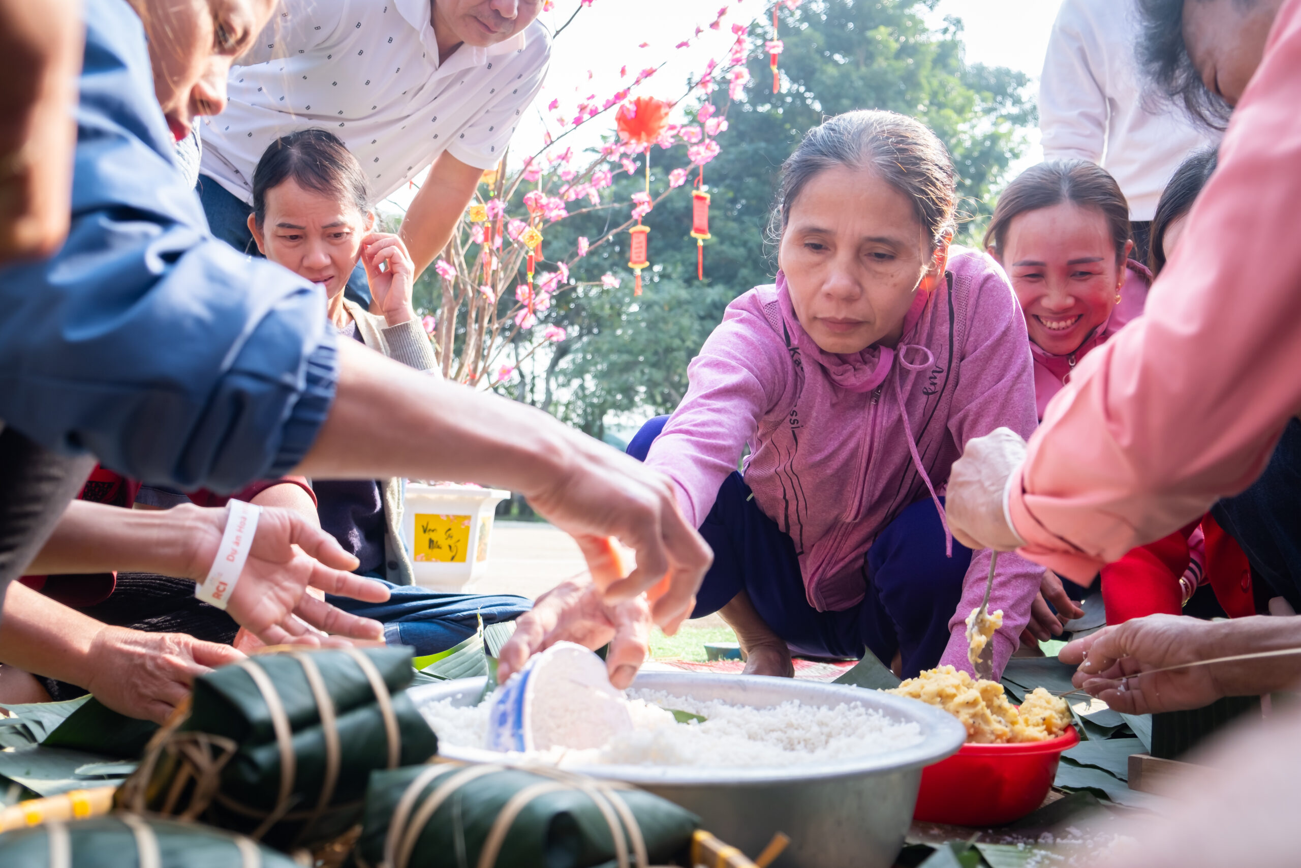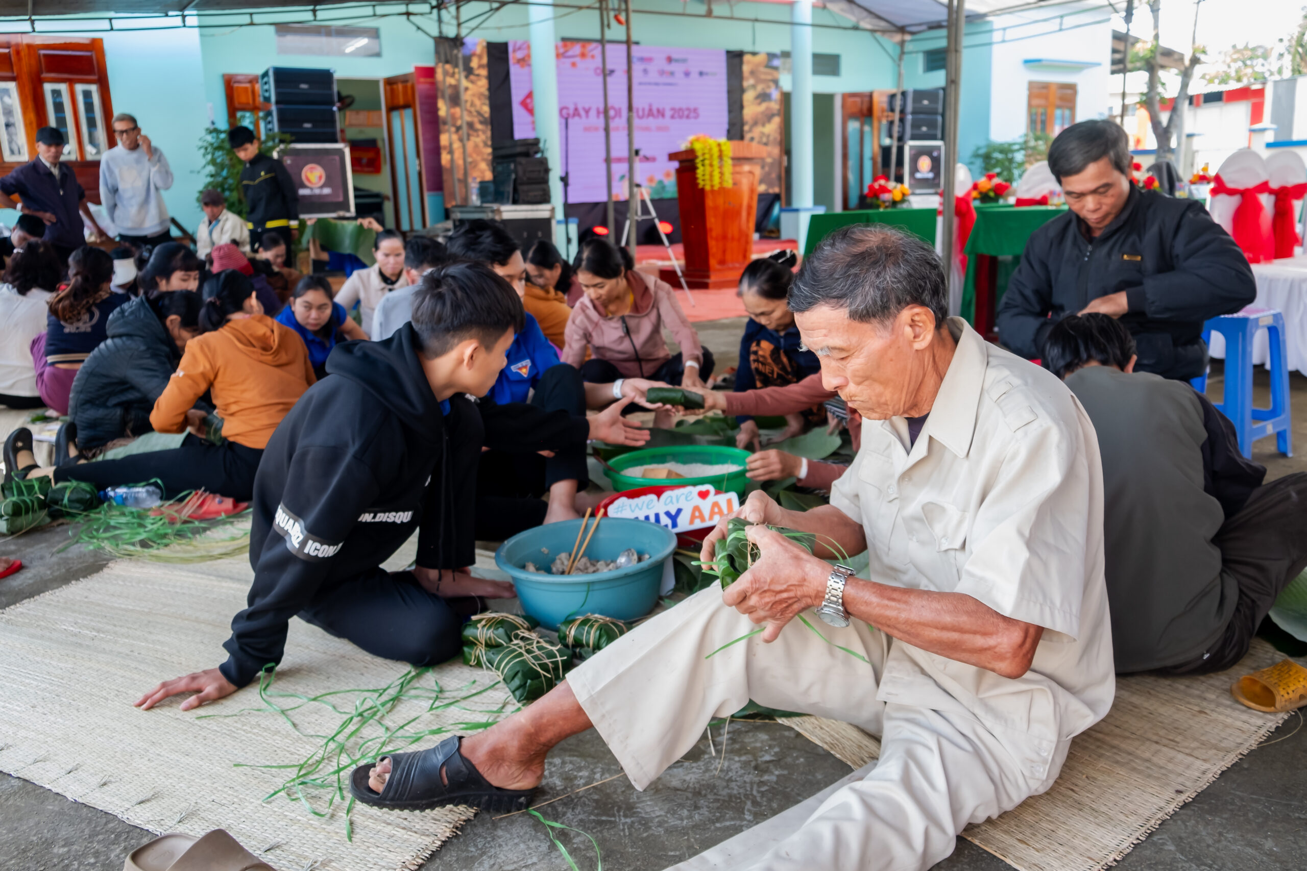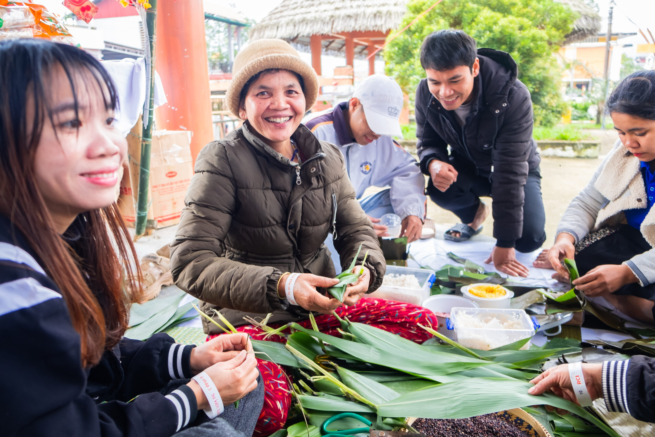 The main activities of the event included art performances, participation in traditional games, a fast bánh chưng wrapping contest, fruit tray displays, cake and jam making, and crafting products for the Lunar New Year.